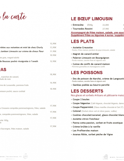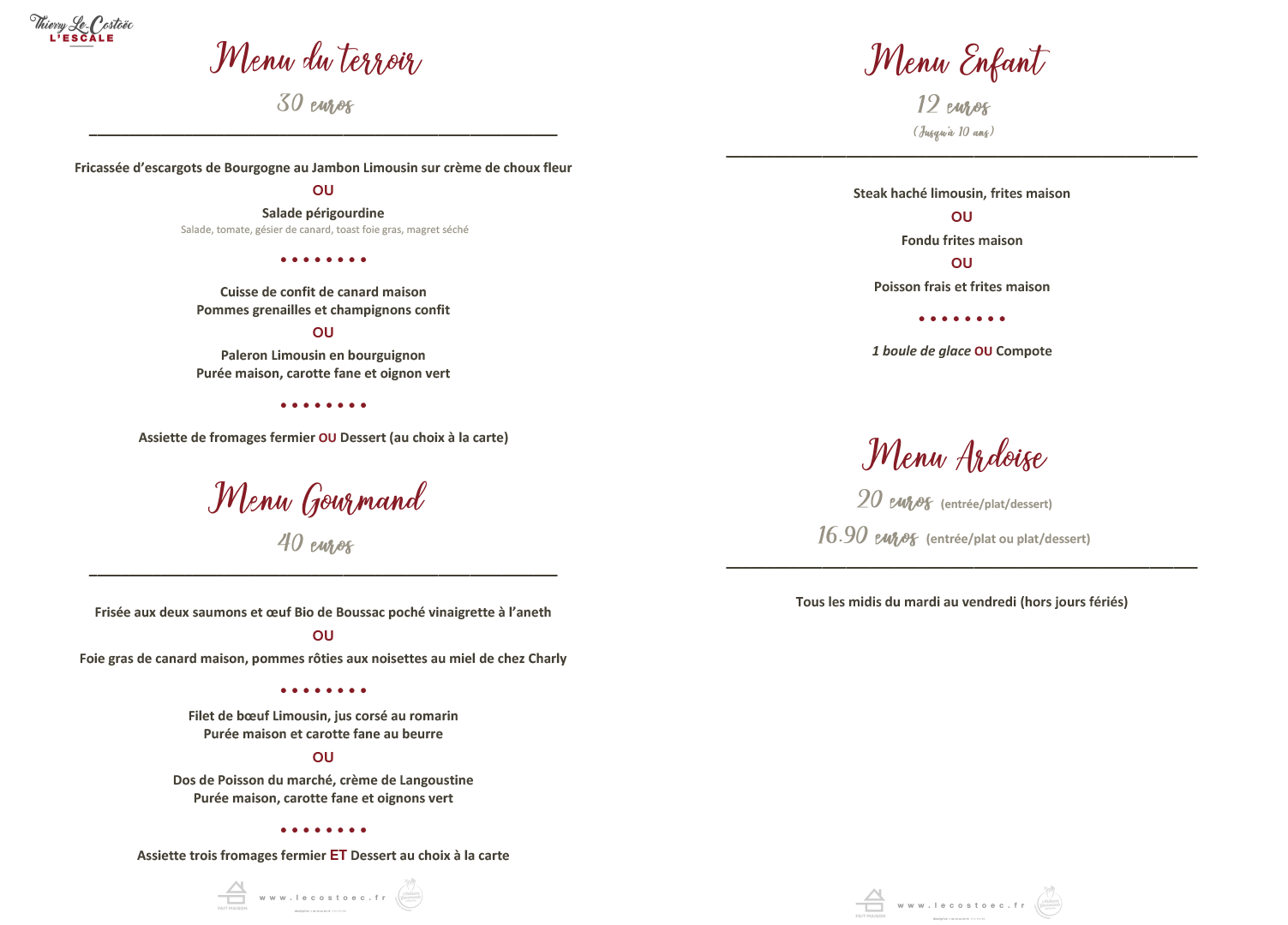 Notre menu spécial fêtes